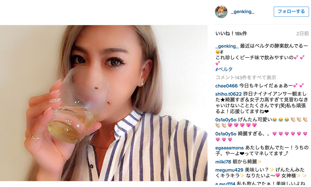 ゲンキングも飲んでる!おすすめ酵素ドリンク「ベルタ酵素」 ゲンキングも飲んでる!おすすめ酵素ドリンク「ベルタ酵素」 2015年07月28日 ファスティングドリンクおすすめは・・・ あの「GENKING」さんも飲んでいる美容成分たっぷりの 「ベルタ酵素ドリンク」 御自身のインスタグラムで紹介されていました! ベルタ酵素ドリンクは 「@cosme」2014年度第1位! 「楽天市場」美容ドリンク・ファスティング部門で第1位! 口コミでも人気が広がっています♪ その理由は・・ ■業界最大級の酵素数、ドリンクは165種類、サプリは508種類 ■美容成分がたっぷり配合! ヒアルロン酸・プラセンタ・ザクロ 女性にとっては夢のような組み合わせのドリンクです♪ 美しいモデルや芸能人のために開発されたのが分かりますね。 ■味は美味しいピーチ味、そのまま飲んでも美味しいですが ファスティングしながらなら、水や炭酸で薄めて飲むのが 腹持ちもよくなっておススメです。 置き換えダイエットなら、プレーンのヨーグルトにかけるのも美味しい! ■定期便のお申し込みなら 508種類の酵素が入っているサプリがプレゼントでついてきます! ファスティングにも、プチ断食にも、ダイエットにも キレイに美しくスリムになるなら酵素ドリンクがおススメ!! ベルタ酵素ドリンクはコチラをチェック! ⇒まずはマイナス5kg!今すぐキレイに痩せる 産後のかたにも無理なく始められる酵素ドリンクです♪ PR